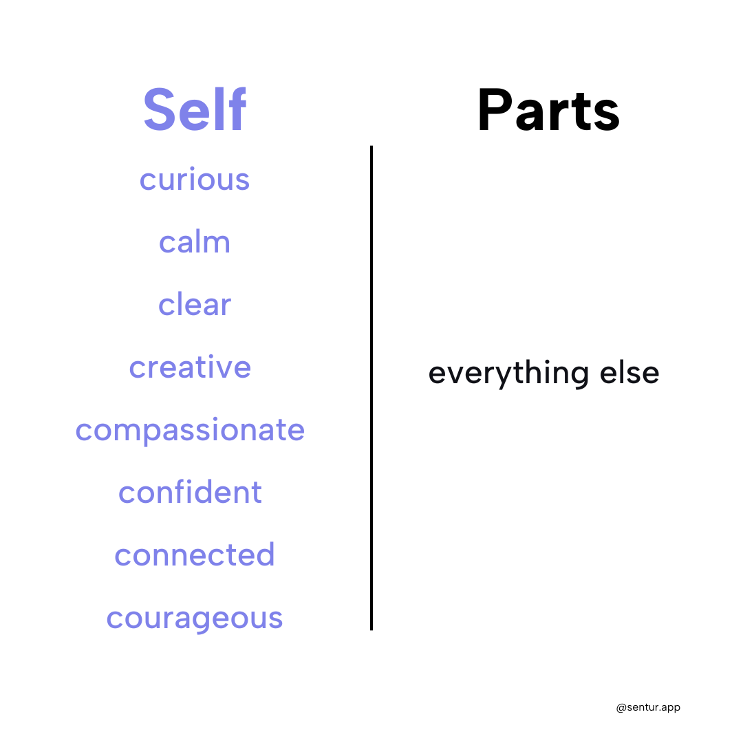 Ok, so if parts are subpersonalities within our psyche. They're like unique characters in the story of who we are, each with their perspectives, feelings, and histories. Understanding this is crucial, but the real task lies in building awareness of part vs Self in the beginning. Some experiences are easy to see as parts. For example, seeing anger as a part and not who you are is easier than let’s say a part of you that worries. And there is also an infinite number of possibilities for unique makeups of parts in the system. Kinda like there are an infinite number of unique people in this world.